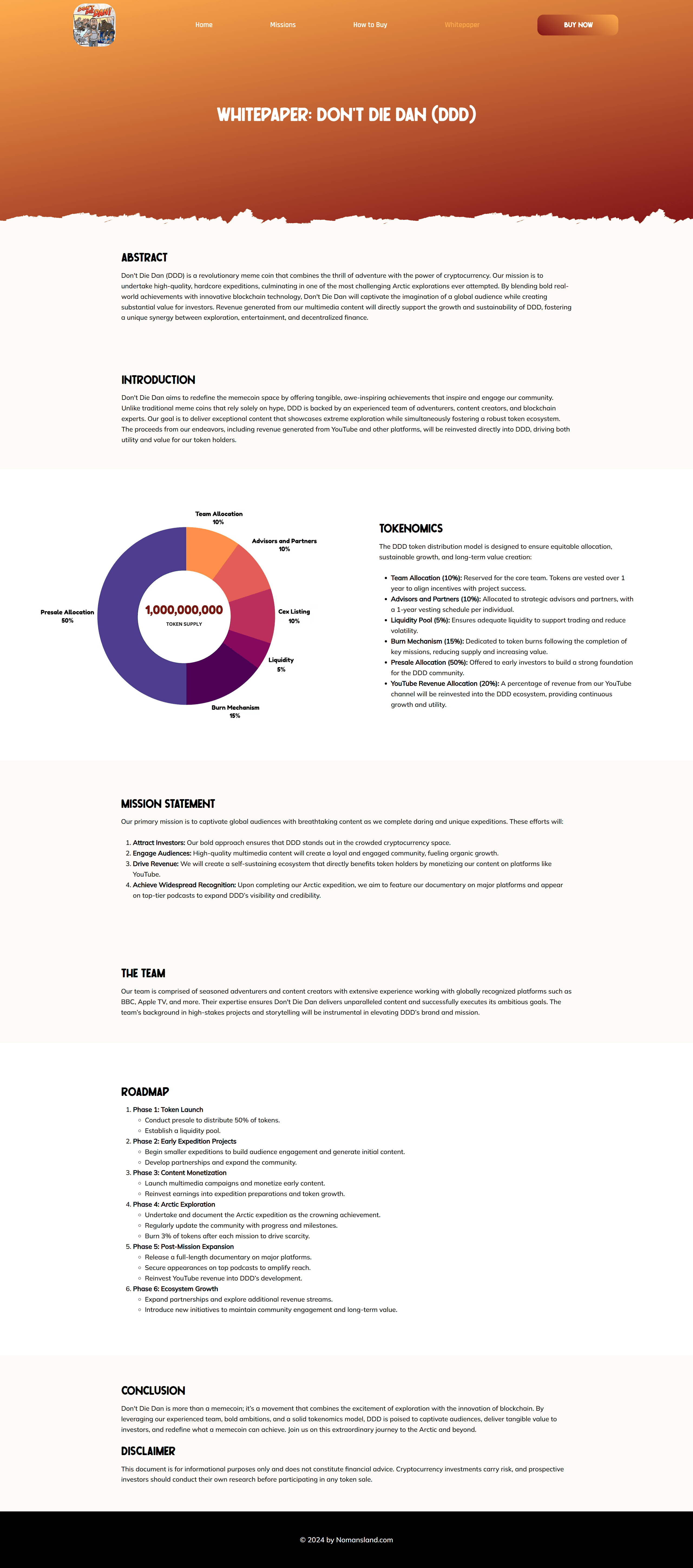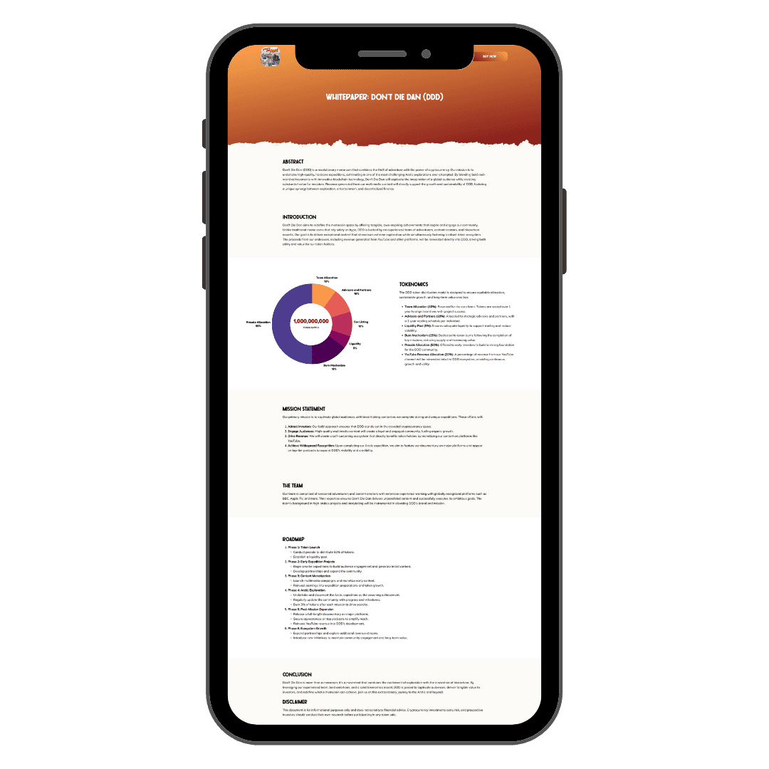 Don’t Die Dan (DDD) is not just a meme coin — it’s a multimedia adventure experience merged with blockchain. The project blends daring expeditions, survival content, and decentralized finance into one bold narrative.